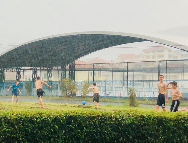 We had an unexpected thundershower in the afternoon, which of course was the perfect opportunity for our crazy kids to practice their soccer skills (or run around soaking wet and shouting themselves hoarse).