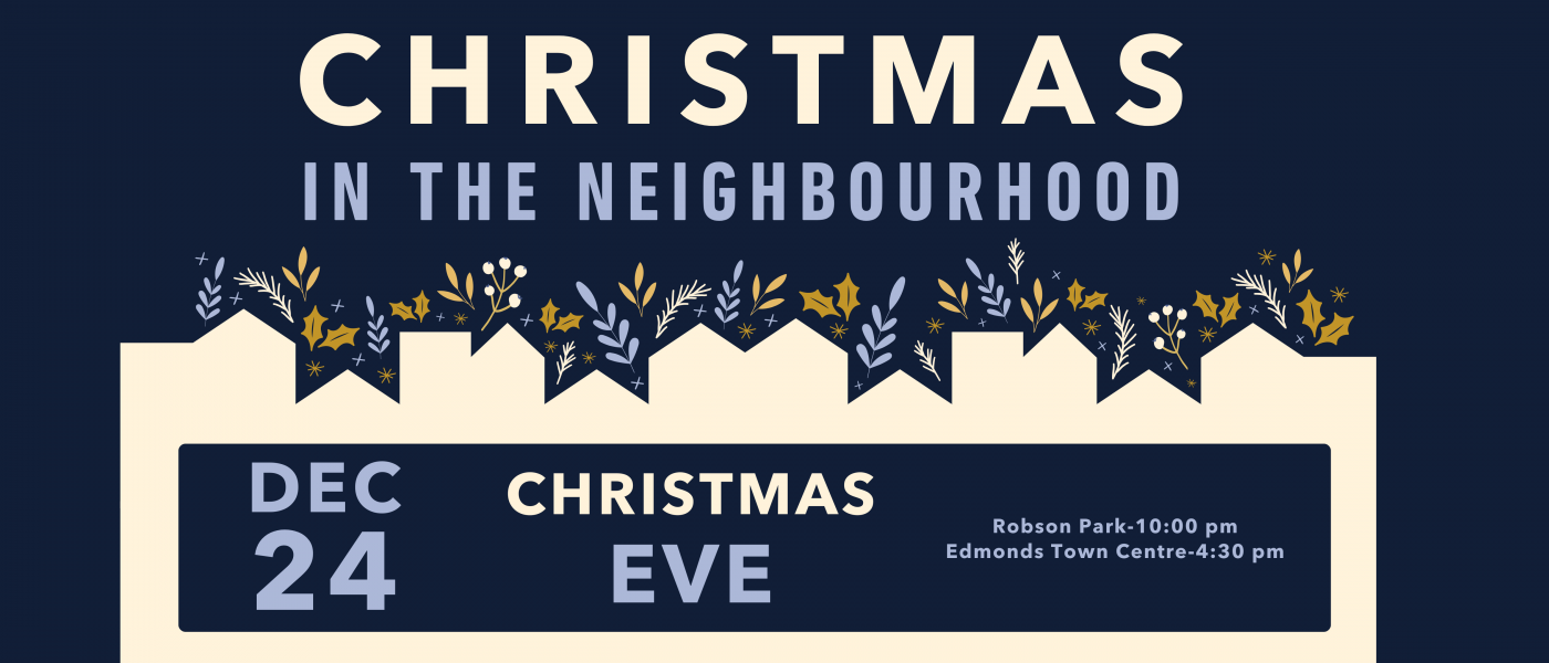 December 24: Christmas Eve – Edmonds Campus @4:30pm, Robson Park @ 10:00pm